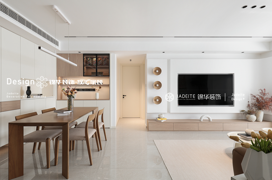 业主是年轻的小哥哥婚房,喜欢的色调,浅色系,原木风格,户型的改动最大化利用空间,所以整体的配色明亮,加了一点木色来点缀。简单大方。整个空间以最小的体积,凝聚最大的价值。把对生活的不将就融入品质家居设计,从细节体会质感生活的舒心温暖。白色与木色的结合,使得空间更为干净简洁,低饱和度高明度的空间总会给人不一样的安静的感觉。奶油原木风格以“温润自然,柔和治愈”为核心设计理念,将原木的原生质感与奶油色系的软糯特质相结合,打破传统原木的厚重感与奶油风的甜腻感,构建兼具自然肌理与温柔氛围的空间。设计旨在平衡“自然本真”与“舒适柔软”,让使用者在空间中既能触摸木材的原生温度,又能沉浸于奶油色调带来的松弛感,打造适配现代都市人对“慢生活”与“质感居住”的双重需求。优选浅色系天然实木(白橡木、白蜡木、枫木),保留木材的细腻纹理与轻微结疤,以浅淡木纹凸显通透感;辅以环保多层板、颗粒板(均达E0级环保标准),表面采用开放式木蜡油涂装,保留木材透气感的同时,呈现柔和哑光质感。避免深色调重木,防止破坏奶油风的轻盈感。点缀低饱和度的莫兰迪色系(浅灰蓝、豆沙绿、茱萸粉),用量控制在整体色彩的5%-10%,用于软装(抱枕、地毯、装饰画)或局部墙面,增加空间层次感;禁止高饱和度、高对比色,保持整体色调的柔和统一。